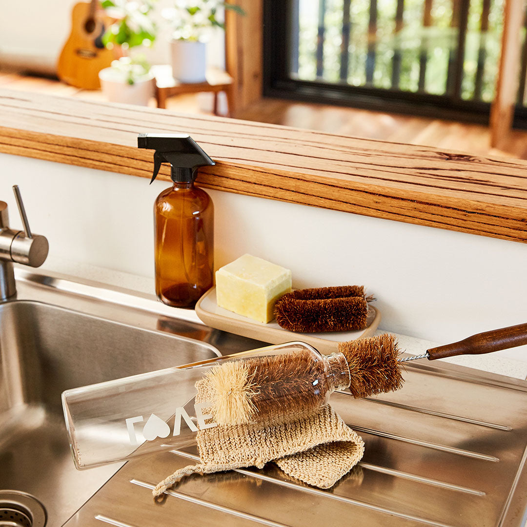 Care of your brush: Rinse and place in your dish rack to dry. Compost your plastic free dish brush at the end of it's life.